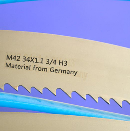 M42帶鋸條是眾多鋸切工具中一款優(yōu)質(zhì)的切削刀具,其原材料的采用、制造的生產(chǎn)工藝等都決定了生產(chǎn)的帶鋸條具有了較高的品質(zhì),而且其齒部材料中含有8%以上的鈷成分,是一種理想的合金高速鋼材料,從而使得制成的帶鋸條齒尖堅韌、鋒利,具有很高的切削能力。