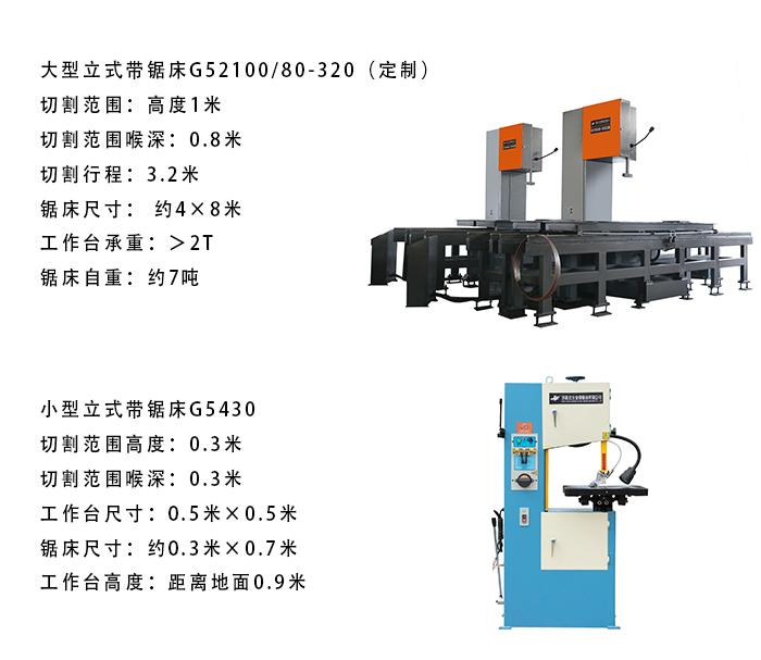 立式帶鋸床可鋸切各種金屬、非金屬工件,例如金屬管材、棒料、方料、鋼胚、不銹鋼、碳鋼、鋁材、石墨、橡膠、皮革甚至風(fēng)干肉等無數(shù)種材料,鋸床能完成各種直線、波線、角度、花樣切割。大型立式帶鋸床的承重大、切割范圍大、占地面積大;,小型立式帶鋸床占地小、便移動、切割范圍小,兩種立式帶鋸床的區(qū)別如圖下所示: