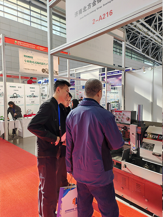 濟(jì)南北方金鋒鋸業(yè)有限公司是專業(yè)生產(chǎn)數(shù)控帶鋸床、立式帶鋸床、臥式帶鋸床、旋轉(zhuǎn)角度帶鋸床以及定制生產(chǎn)各種非標(biāo)鋸床的廠家。在此次展會(huì)上,我們特地展出了公司的“拳頭產(chǎn)品”:龍門臥式帶鋸床GZ4230、數(shù)控帶鋸床GS260、旋轉(zhuǎn)角度帶鋸床G-330,這些精品帶鋸床一經(jīng)展出,吸引不少中外客戶前來(lái)咨詢,公司團(tuán)隊(duì)人員詳細(xì)解答了客戶關(guān)于產(chǎn)品性能、特點(diǎn)等疑問(wèn),使不少客戶對(duì)金鋒帶鋸床產(chǎn)生了濃厚興趣。此次展會(huì),金鋒帶鋸床憑借卓越的技術(shù)實(shí)力和創(chuàng)新成果成為展會(huì)焦點(diǎn),贏得了行業(yè)專家和客戶的高度贊譽(yù)。
