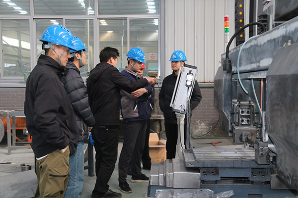 郭總首先從帶鋸床的不同類型、結(jié)構(gòu)原理以及不同類型帶鋸床的性能特點(diǎn)、重要技術(shù)參數(shù)入手,用多年的工作經(jīng)驗(yàn)和通俗易懂的語(yǔ)言進(jìn)行了詳細(xì)解說。為了使新員工更直觀地理解帶鋸床工作原理,郭總還讓相關(guān)技術(shù)人員啟動(dòng)機(jī)器,親自上手實(shí)操,并對(duì)帶鋸床運(yùn)行的相關(guān)步驟進(jìn)行了重點(diǎn)講解和示范。